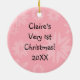 O adorno de manutenção personalizável de 1rua de Natal do bebê com uma bebê dormindo em um design de floco de neve cor-de-rosa e macio. Você pode personalizar facilmente este ornamento com a foto do bebê e adicionar seu próprio texto ao fundo. É excelente como presente de Natal de 1rua e será recordação para os próximos anos.