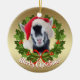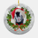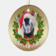 Bebê Adorável Cabra Níger Cabra Níger Pintura personalizada por guincheira do GetYerGoat™ Todos apunhalados em seu Papai Noel, cercada por uma coroa de Natal verde de Holly sobre um fundo de ouro e o fundo de Prata Bokeh do outro lado - Personalize a saudação que diz Feliz Natal de um lado, personalize o nome do rebanho, o nome da fazenda ou da cabra (OU QUALQUER DING) assim como o ano do lado oposto - Enfeites de natal de Capa para a doação de presente de Férias, ornamentos de árvores de Natal ou janelas - designs duplos de lado e pode ser personalizado. Perfeito para trocas de ornamento em festas de Natal, presentes de Criador, presentes de veterinário, Mostrar presentes.