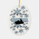 Um design gráfico de flocos de neve e um móvel de neve da artista/designer Charmaine Paulson em um Enfeites de natal. O ornamento tem o texto "Let it Snow Montana", e modelos para sua personalização.