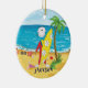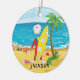 Nosso único enfeites de natal de surfista personalizado e datado apresenta o mais fofo boneco do surfista em fundo azul-oceano com palmeira! Personalize com suas informações e data e você está pronto para ir! Um maravilhoso presente de manutenção para sua árvore de natal e um excelente para sua coleção de enfeites de natal.