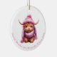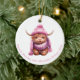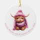 Aprecie seu "rebanho" com este adorável ornamento de fotos de cerâmica de Vaca Highland, rosa e personalizado! A boi encantadora (mas um pouco maliciosa), que parece estar pronta para um dia de trenó e chocolate quente, incorpora o relaxado, mas aventureiro, espírito da época. Sua foto de família no fundo será uma lembrança carinhosa por anos! (Faz um presente de excelente!)