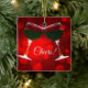 Este é um enfeite com tema de vinho divertido com dois copos de vinho tinto tostando e a palavra "Saúde!". É a hora do ano para torcer de férias! Faz um presente de Natal divertido também.