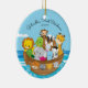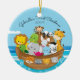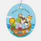 Noah das características dos enfeites de natal do bebê a arca de primeiro encheu-se com os animais ajustados em um fundo da água azul. Personalize com sua informação do bebê e data e você são todos ajustam-se para ir! Presente datado maravilhoso da lembrança para Natal do seu bebê o ø.