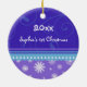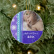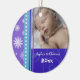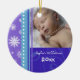 Os primeiros enfeites de natal do bebê customizáveis com sua própria foto do bebê no azul moderno, no roxo e no branco com flocos de neve e teste padrão festivos dos redemoinhos. Um presente memorável do Natal para alguma mamã nova.