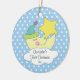Os primeiros enfeites de natal do bebê caracterizam um grupo doce da lua polca azul em um fundo pontilhado! Personalize com sua informação do bebê e data e você são todos ajustam-se para ir! Presente datado maravilhoso da lembrança para Natal do seu bebê o ø.