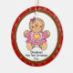 Os primeiros enfeites de natal do bebê caracterizam a menina pequena a mais bonito do pão-de-espécie ajustada em um fundo vermelho do homem de pão-de-espécie! Personalize com sua informação do bebê e data e você são todos ajustam-se para ir! Presente datado maravilhoso da lembrança para Natal do seu bebê o ø.