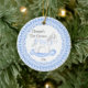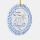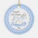 Os primeiros enfeites de natal do bebê caracterizam um cavalo de balanço azul doce moldado no laço azul! Personalize com sua informação do bebê e data e você são todos ajustam-se para ir! Presente datado maravilhoso da lembrança para Natal do seu bebê o ø. graphics©delightful-doodles