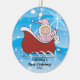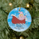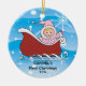 Os primeiros enfeites de natal do bebê caracterizam o bebé louro o mais bonito em um grupo vermelho do trenó em um fundo enchido neve. Personalize com sua informação do bebê e data e você são todos ajustam-se para ir! Presente datado maravilhoso da lembrança para Natal do seu bebê o ø.