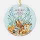 Os primeiros enfeites de natal do bebê caracterizam uns cervos, um urso, uma coruja, uma raposa, um guaxinim & um alce pequenos doces ajustados em um fundo azul da cena da floresta. Personalize com sua informação do bebê e data e você são todos ajustam-se para ir! Presente datado maravilhoso da lembrança para Natal do seu bebê o ø.