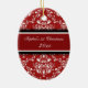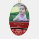 Enfeites de natal do bebê os øs customizáveis com suas próprias fotos do bebê na cor damasco floral clássica vermelha e branca elegante. Um presente memorável para alguma mamã nova esta época natalícia.