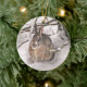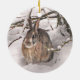 Este ornamento do feriado caracteriza uma cena típica do inverno: um coelho de coelho marrom doce do coelho com orelhas grandes huddled sob um abrigo procurando do pinheiro da neve. Não olhará a suspensão bonito de sua árvore de Natal?