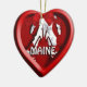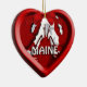 Um design gráfico de uma lagosta e flocos de neve em um quadro vermelho estilo 3D em um Enfeites de natal de Maine com forma de coração. O ornamento tem modelos de texto para sua personalização. ©2012charmanepaulson