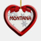 Um design gráfico de flocos de neve em um quadro vermelho estilo 3D em um Enfeites de natal de Montana em forma de coração. O ornamento tem modelos de texto para sua personalização. ©2012charmanepaulson