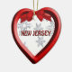 Um design gráfico de flocos de neve em um quadro vermelho estilo 3D em um Enfeites de natal de forma cardíaca de Nova Jersey. O ornamento tem modelos de texto para sua personalização. ©2012charmanepaulson