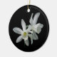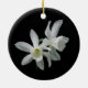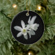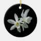 Este ornamento requintado do feriado caracteriza dois daffodils brancos delicados em um fundo preto puro. Esta não será suspensão bonita de sua árvore de Natal?