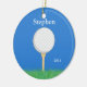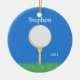 Estes enfeites de natal customizáveis do golfe podem ser personalizados com um nome e o ano. Fazem um grande presente do stuffer ou do Natal da meia. Caracteriza uma bola de golfe em um T na grama.