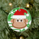 Este ornamento adorável da árvore de Natal fará uma adição fantástica a suas decorações da árvore de Natal! As características de design um fundo verde e branco com listras, flocos de neve e argyle modelam. Há um macaco marrom adorável com o a criança-como o sorriso em sua cara. Tem os olhos marrons grandes com uma cintilação neles. Sobre o macaco pequeno a cabeça é um chapéu vermelho de Papai Noel. Este macaco pequeno está pronto para o Natal e está pronto para que Papai Noel chegue. Estes enfeites de natal do macaco de Papai Noel fazem um grande presente para amigos e amados que recolhem ornamento ou macacos do amor!