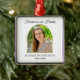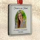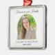 Este adorável ornamento será um guardião durante anos. A design apresenta as palavras "Para sempre em nossos Corações" ao longo do topo. Sua foto aparece dentro quadro de arco do ouro no centro em um pano de fundo branco. O nome e as datas de seu amado aparecem abaixo. Simpatia por direitos autorais Obrigado por Kathy Henis