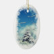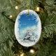 Este ornamento do feriado é um país das maravilhas do inverno! A tempestade da neve é excedente e a paz estabeleceu-se delicadamente sobre esta cena bonita do inverno. A árvore spruce tem uma cobertura da neve branca, o céu é um azul profundo com nuvens inchado e os ramos cobertos de neve moldam a imagem. Esta não será suspensão bonita em sua árvore de Natal?