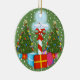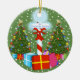 O Pólo Norte cercado por árvores de Natal decoradas com lotes dos presentes compo estes enfeites de natal do divertimento. Customizável assim você pode adicionar seu próprio texto e mudar a cor do fundo. Traga nos feriados com este design festivo.