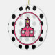 Uns enfeites de natal do professor que caracterizam um fundo de bolinhas pretas sobre o branco na parte dianteira. Logotipo cor-de-rosa da escola dentro do quadro cor-de-rosa.