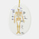 Este ornamento do divertimento caracteriza um esqueleto na parte dianteira com os ossos etiquetados. Na parte traseira é um ponto a personalizar com um nome, data, nome da escola ou o que quer que você escolhe. Presente perfeito para um professor de ciências, um doutor, ou um cientista.