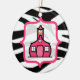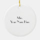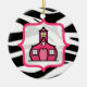 Uns enfeites de natal do professor que caracterizam um fundo do impressão da zebra na parte dianteira. Logotipo cor-de-rosa da escola dentro do quadro cor-de-rosa. Personalize com seu nome no rosa no lado oposto.
