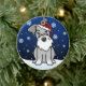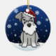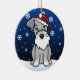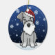 Enfeites de natal bonitos do Schnauzer, tirados em desenhos animados do kawaii! Esta raça adorável do cão está vestindo um chapéu vermelho do papai noel, e os flocos de neve estão caindo toda em torno dele. Absolutamente querido, perfeito para a árvore do Xmas do amante do cão!