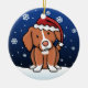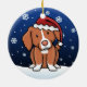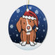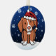 Enfeites de natal anunciando do Retriever do pato bonito de Nova Escócia, tirados em desenhos animados do kawaii! Esta raça adorável do cão está vestindo um chapéu vermelho do papai noel, e os flocos de neve estão caindo toda em torno dele. Absolutamente querido, perfeito para a árvore do Xmas do amante do cão!