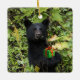 Este ornamento da vida selvagem mostra uma foto de um urso negro com um presente de Natal. Quem ama ursos ou a vida selvagem apreciará este adorável ornamento.