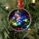 O ornamento do vitral contem cores vívidas brilhantes como azuis marinhos, vermelho, roxo, ouro, chartreuse, alaranjado, e marrom.