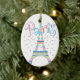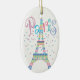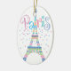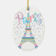 Torre Eiffel hearted dos CONFETES A da TORRE EIFFEL, multi-colorida clara com uma "Paris lunática" que chove confetes. Opinião em um lado, opinião do dia da noite no outro.