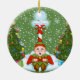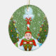 Um elfo sonolento debaixo do Polo Norte cercado por árvores de Natal constitui este Enfeites de natal divertido. Personalizável para que você possa adicionar seu próprio texto e alterar a cor de fundo. Traga as férias com esta design festiva.