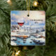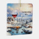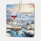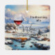 Enfeites de natal temático de vinho com pintura de uma sonhadora neve cobria a terra maravilhosa do inverno com um copo de vermelho.