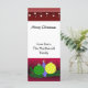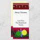 Uma maneira bonito de enviar saudações ou entregá-las aos vizinhos. Os ornamentos festivos numa cama de pinheiros, um fundo vermelho profundo acentua-o. Personalizar conforme desejado.