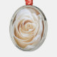 Belo ornamento com grande rosa de cor creme na floração. Cor muito pálida, de branco. Pequenas pétalas. Fotografia ampliada em close. Dê um presente de Natal de flores para ela. Elegante e delicado.