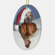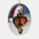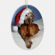 Enfeites de natal ovais que caracterizam Flynn o Vizsla húngaro.