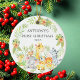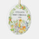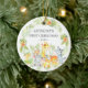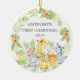 O primeiro ornamento de Natal de um bebê bonito são os mais doces animais da selva enquadrados com as folhas da selva de aquarelas.