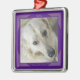 Ornamento metálico com borda roxa, fita vermelha. O texto é adicionado no prompt personalizar. A cor de fundo é personalizada após o prompt personalizado e o download da sua imagem. HAMbyWhiteGlove