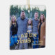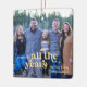 Um ornamento fotográfico com fonte dourada que diz "Todos os Anos..."