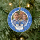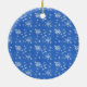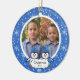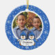 Enfeites de natal bonitos da foto dos gêmeos que caracterizam um par de pinguins gêmeos com um fundo azul do floco de neve. Visite-nos em www.celebrateitornaments para ver nossa grande seleção de ornamento personalizados pinguim e de ornamento temáticos da família.