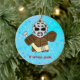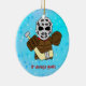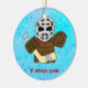 Feriados / Enfeites de natal. Procure na minha loja muitas mais designs com um fundo de Natal legal! Excelente para as árvores de Natal dos fãs de esportes, e excelentes presentes para a sua família e amigos doidos de esportes. Ilustração desenhada à mão de um bonitinho goleiro de hóquei no gelo, vestindo o estilo antigo, equipamento de vintage incluindo almofadas clássicas e máscara! Excelente para t-shirts, capuzes, chaveiros, donas de casa, canecas, etc.!