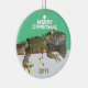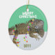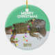 Iguana Enfeites de natal ano modelo. Iguana ama, ornamento cerâmico de árvores. Uma grande iguana verde decorada com uma corda de luzes com texto e ano em forma de modelo. Ambos os lados contêm a mesma imagem.