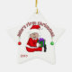 Você pode facilmente mudar o ano deste adorável ornamento de natal de Papais noeis latinos Baby 1rua antes de fazer o pedido. Possui um bebê em um terno de papai noel vermelho e boné de estocagem e texto que diz "O Primeiro Natal do Bebê!".