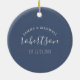 Um presente perfeito para recém-casados ou casamentos de aniversário, este elegante Enfeites de natal acrílico mostra seus nomes e data de casamento nas costas com uma réplica da minha arte original de peixes de leão. Seu sobrenome foi colocado em uma divertida letra tipográfica sobre um fundo azul sólido. Personalize este ornamento redondo com os seus nomes para criar um guardião único para um presente de Natal. Para ver mais designs de Natal na Flórida por Victoria Grigaliunas visite www.zazzle.com/dotellabelle
