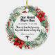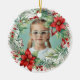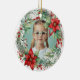 Este elegante ornamento comemorativo de Natal de dois lados é uma maneira sincera de lembrar um amado. A frente mostra uma foto personalizada, cercada por uma coroa festiva de galhos de pínus, bagas vermelhas e poinsetos vermelhos. O rico verde e as cores quentes criam uma sensação de feriado aconchegante, fazer-a de um bem-estar apreciado. As costas podem ser personalizadas com seu nome, datas, ou uma mensagem especial, oferecendo uma lembrança amorosa que será preciosa por anos. Perfeito para honrar sua memória, esse ornamento combina calor e sofisticação, celebrando sua presença durante o feriado.