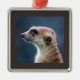 Este meerkat bonito e brincalhão adoraria um lugar bem na sua árvore de Natal. Meerkats são nativos de desertos e prados. Os seus pêlos rochosos, listrados, rostos pequenos, pontiagudos e grandes olhos dão-lhes um aspecto distintivo. A imagem está rodeada de um castanho esticado e emoldurada em metal prateado. As costas são todas metálicas.