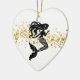 Enfeites de natal apresentado em forma cardíaca com impressão de sereia rico a preto e branco. Personalize este item ou comprar como está.