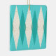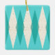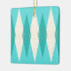 Estes enfeites de natal modernos de Argyle do meio século customizável caracterizam um fundo vibrante, de turquesa e um teste padrão da modificação, cobertura translúcida maior, diamantes de creme com o ouro colorido, salpicos dos diamantes da cerceta do vintage da era espacial. Este argyle inspirado, deconstructed minimalista é uma reminiscência simplista do maior do que a era atômica da vida que dominou a paisagem de decoração dos anos 50 e dos anos 60. Este design kitschy é reminiscente de tudo sinais da pista de bowling do Palm Springs retro' às bandejas que da televisão você se usou na casa da sua avó. Personalize o lado oposto!