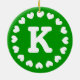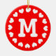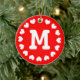 Enfeites de natal monograma com iniciais de nome design com anel de coração impressão. Personalize você mesmo. Cores vermelho e verde personalizáveis. Noivado romântico e ideias de presentes para casais. Acessórios de férias para ele e para ela.